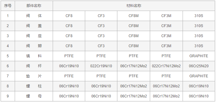 不锈钢反应釜放料阀零件材料: