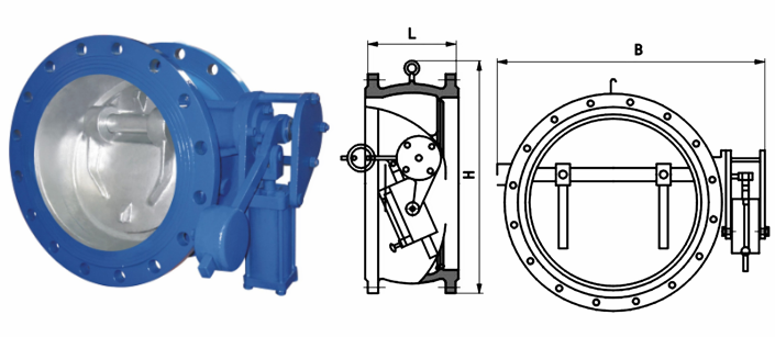 蝶式缓冲止回阀外形结构图: