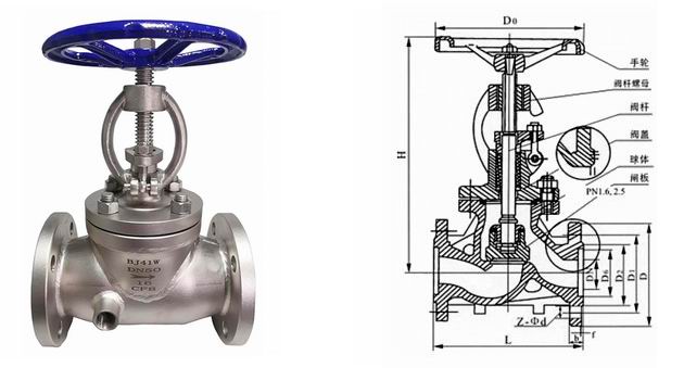不锈钢保温截止阀外形结构图: