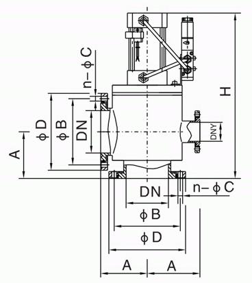 气动高真空挡板阀外形结构图: