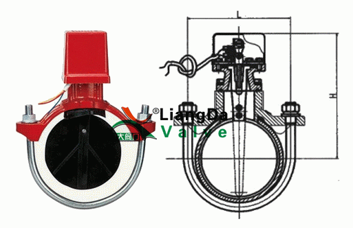 马鞍式水流指示器是自动喷水灭火系统的一个组成部件,通常安装于管网配水干管或配水管的始端,用于显示火警发生区域,启动各种电报警装置或消防水泵等电气设备。适用于湿式、干式及预作用等自动喷水灭火系统。