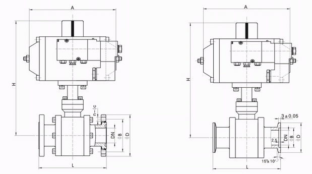 气动高真空(压力)球阀连接尺寸:
