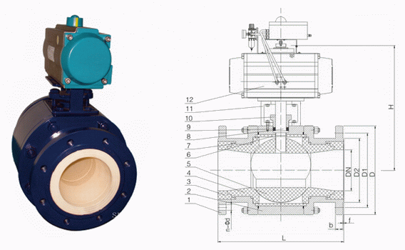 陶瓷气动球阀外形结构图: