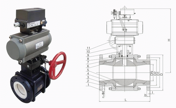 气动带手动陶瓷球阀外形结构图:
