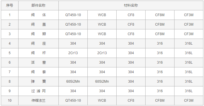 低阻力倒流防止器零件材料: