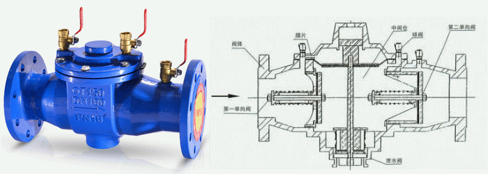 一体式倒流防止器工作原理: