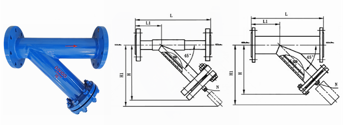 管道用三通Y型过滤器主要由主管、斜管、法兰和法兰盖、紧固件及过滤网、排污丝堵等零部件组成,其制造要求、试验方法及检验规则等都是按《管道用三通过滤器》GB/T 14382-2008标准执行,该Y型过滤器是用无缝钢管由主管和斜管按45度角通过焊接工艺焊制而成的,它通过对焊、承插焊、螺纹、法兰等方式与管道连接,斜管内置有相应过滤面积和过滤精度的过滤网。