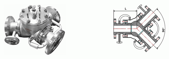 保温三通换向阀球体与阀杆为一体铸造成型,从而提高了同心度精度,其可根据工况需要,将阀体两出口端之间的夹角设计成45°、60°、90°、120°及其他角度等。该阀不仅具有保温保冷的特点,而且能对物料的流动方向进行切换,如果配上电动、气动或液动装置还能实现自动控制的功能。本产品特别适合安装在Y形管路系统中放料常温下易凝固或结晶的物料。