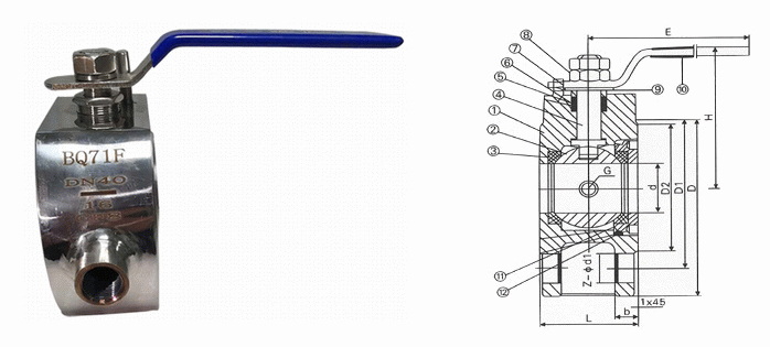 2、当逆时针转动手轮时,阀杆则反向运动,其底部角形平面使球体脱开阀座。