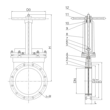 陶瓷耐磨刀闸阀外形结构图:
