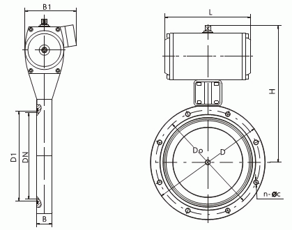气动高真空蝶阀外形结构图: