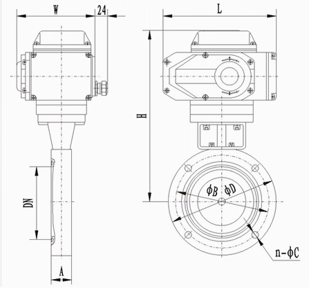 GID型电动高真空蝶阀外形结构图: