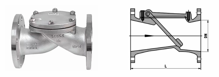 不锈钢橡胶瓣止回阀外形结构图:
