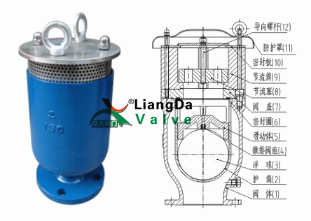 具有防水锤功能,即:保证在管线出现水柱拉断时的负压工况下,迅速大量排气,以避免负压的产生产;而当随后出现的水柱弥合工况时,阀门有效地限制排气,通过延缓排气时间,在管道当中造成空气囊似的弹性压缩空间,阻止快速的水柱弥合可能造成的压力升高,即水锤。