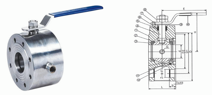 夹套保温对夹式球阀外形结构图: