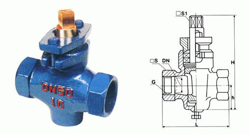 铜芯旋塞阀外形结构图: