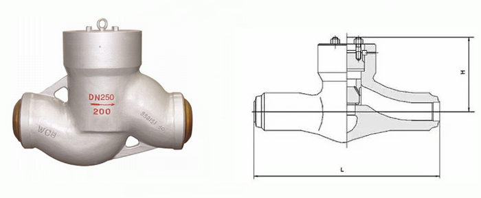 电站止回阀是一种阀体为模锻件,中腔采用无阀盖压力自紧式结构,内腔压力越高密封性能越好,进出端设计成对焊连接,焊接坡口可按标准或用户要求制作,适用于火力发电厂主给水、循环水及抽汽回热等管道上,防止高温高压介质到流,对水泵等主机设备安全起保护作用的装置。其阀座密封面堆焊钻基硬质合金,具有耐磨、耐高温、抗腐蚀、抗擦伤和使用寿命长的特点。本产品应安装在介质流向从下往上流的水平管道上。