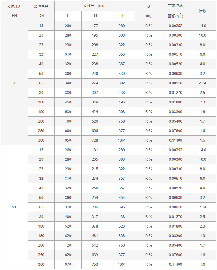 焊接Y型过滤器性能规范表: