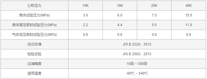 日标Y型过滤器性能规范: