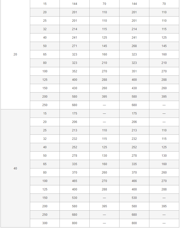 日标Y型过滤器外形尺寸表: