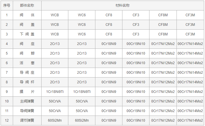 不锈钢蒸汽减压阀零件材料: