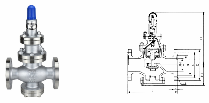 不锈钢蒸汽减压阀外形结构图: