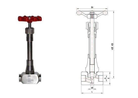 低温针型阀外形结构图: