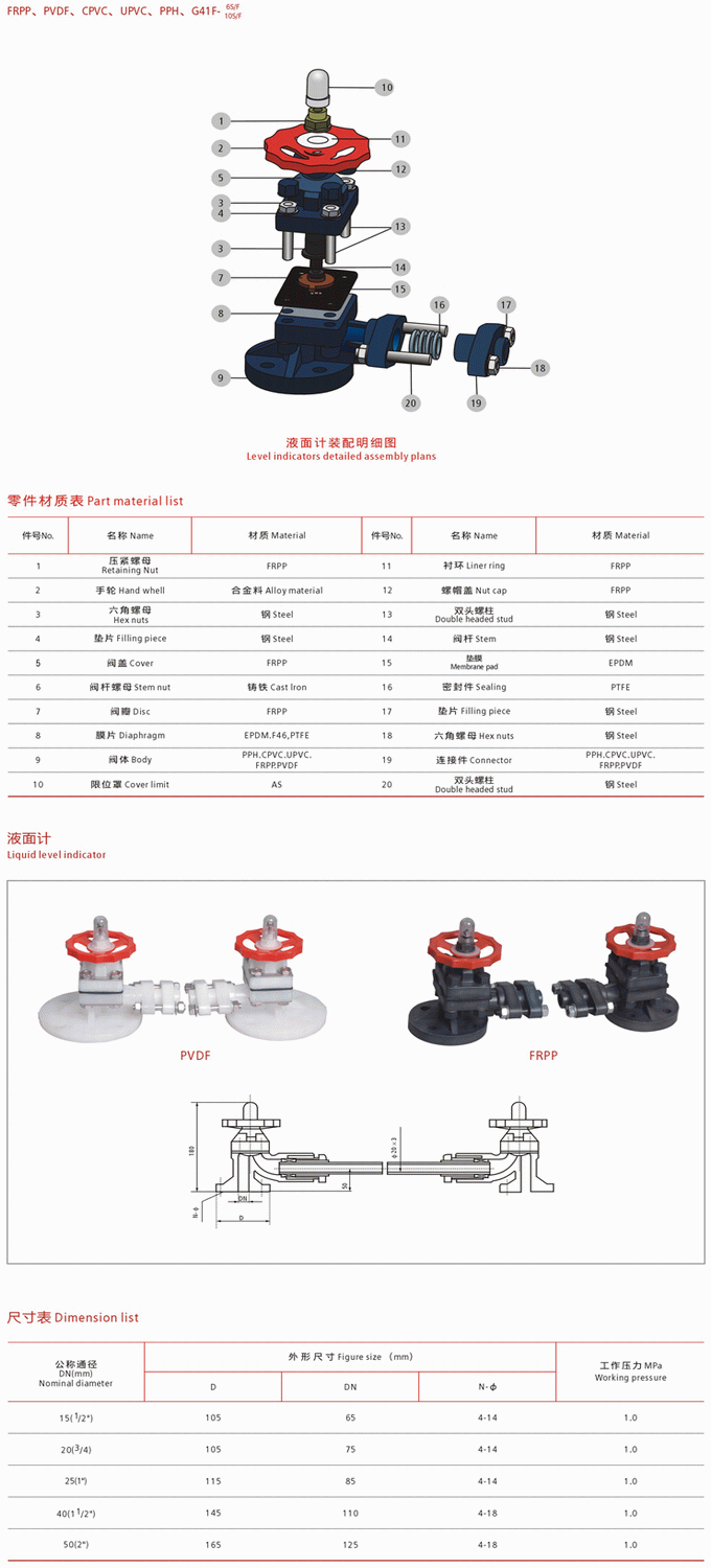 | 材质: | RPP/PPH/UPVC/CPVC/PVDF | ||||||