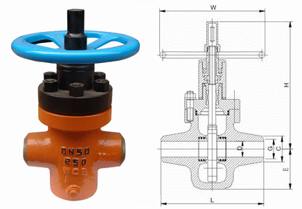 高压焊接平板闸阀外形结构图: