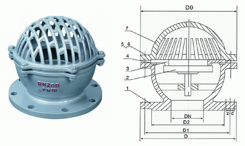 水泵底阀外形结构图: