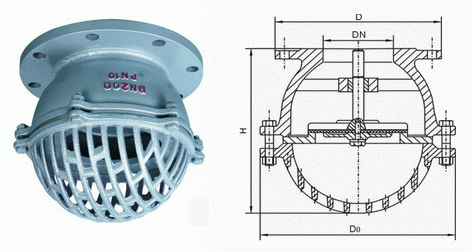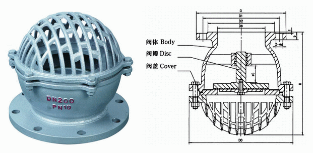 水下式底阀是一种节约能源的阀,一般安装在水泵水下吸管的底端限制水泵管内液体返回水源,起着只进不出的功能。阀盖上有很多个进水口和加强筋起到了不易堵塞,主要应用在抽水的管路上水道和支承的作用,安装在水泵底部防止水的倒流,连接方式有法兰连接和螺纹连接。