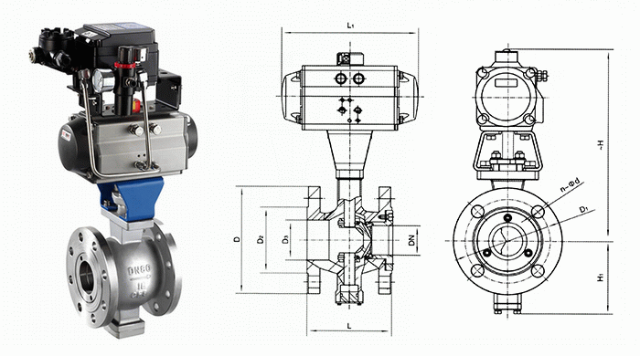 气动V型调节阀外形结构图: