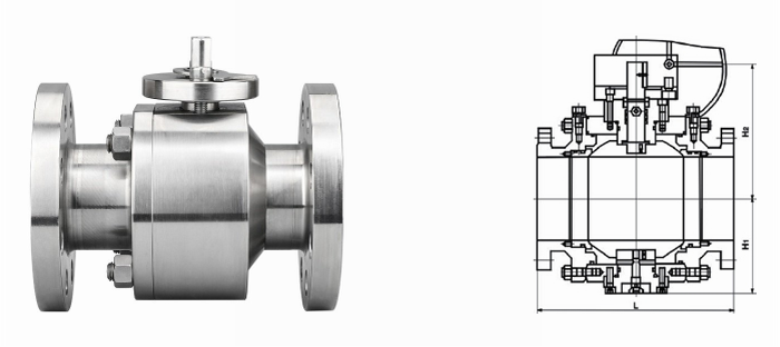 高压法兰球阀外形结构图: