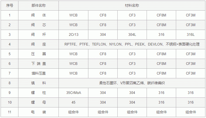 对夹式电动V型球阀零件材料: