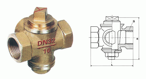 三通全铜内螺纹旋塞阀外形结构图: