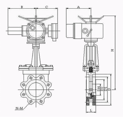 电动陶瓷刀闸阀外形结构图:
