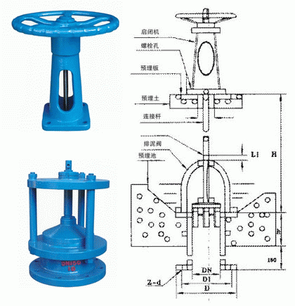 2、本公司排泥阀均配手轮启闭机,如需配电动、气动、液动启闭机应时注明;