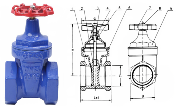 内螺纹弹性座封闸阀外形结构图: