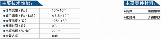 真空电磁压差充气阀是安装在机械真空泵上,防止泵返油,避免泵油污染真空系统的专用真空阀门。该阀与泵接在同一电源上,当电磁阀关闭或突然断电时,阀利用大气压力差自动关闭真空系统,并对泵腔内充入大气。当通电时先导阀切断大气,真空泵抽气,阀板自动开启,真空系统正常工作。适用的工作介质为空气及非腐蚀性气体。