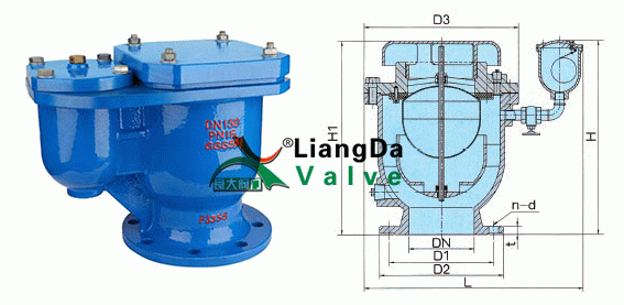复合式快速排气阀也称为复合式双口排气阀,安装于有可能高速进排气的地方,充水时高速排除管道中的空气,在管道放空时吸入空气保持排水通畅,管道正常工作时可以不断地排除析出的空气。在有可能产生水锤的时候使空气自动进入,避免产生负压,防止或减缓水锤的危害。 P4X复合式排气阀可防止浮球在高速气流中被吹起而堵塞排气口,造成排气阀失效。为防止阀口被吹堵,传统式高速进排气阀在入口设置护筒,使阀门在结构上变得复杂。复合式快速排气阀工作原理: