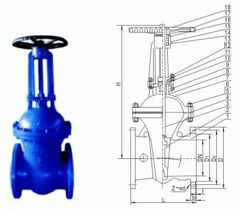 F5德标闸阀外形结构图: