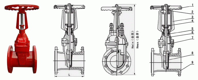 消防专用明杆弹性座封闸阀外形结构图: