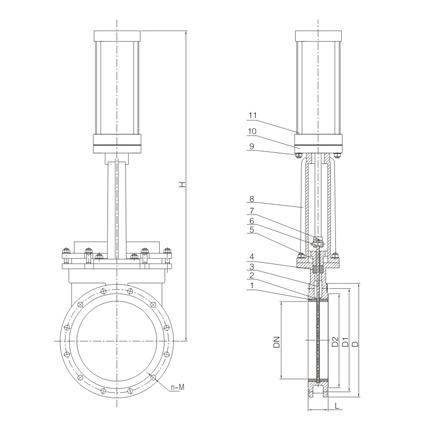 | DN | PN(Mpa) | L | D | D1 | D2 | H | N-M |