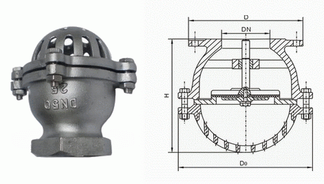 底阀又叫水泵底阀,是一种节约能源的阀,一般安装在水泵水下吸管的底端限制水泵管内液体返回水源,起着只进不出的功能。阀盖上有很多个进水口和加强筋起到了不易堵塞,主要的作用是安装在水泵底部防止水的倒流。