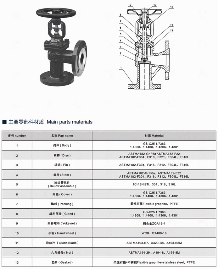 直角式波纹管截止阀详细介绍