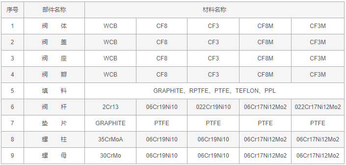 反应釜上展式放料阀零件材料: