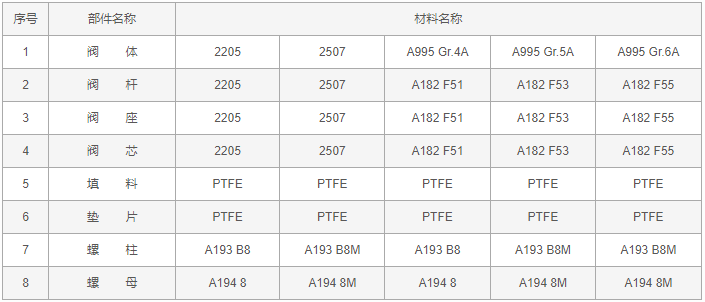 双相钢放料阀技术规范:双相钢放料阀常见的结构型式有上展式和下展式两种,应根据釜内安装的搅拌器类型进行配置,其启闭动作是通过手动、气动或电动驱动阀杆带动阀芯上、下移动来完成的,阀芯与阀座接触时阀门关闭,分离时介质流通。该阀整体采用由铁素体相和奥氏体相构成的双相不锈钢材料制造,机械性能好,耐点蚀性和耐应力腐蚀裂纹性优良,所以,本产品特适用于含氯化物、H₂S、CO₂等腐蚀性物料储槽和其他容器之放料、排料及取样。