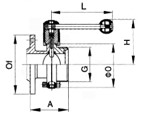 卫生级一端法兰一端螺纹蝶阀结构尺寸:
