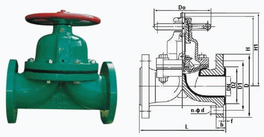 G41J衬胶隔膜阀专用于控制非腐蚀性或一般腐蚀性介质,阀体内腔表面无衬里或覆有可供选择的各种橡胶,适用于不同工作温度和流体管路。衬胶隔膜阀的启闭是依靠旋转手轮而达到的。本阀在阀盖上端标有可窥见阀门处启或闭位置的显示色别,以指示阀门的启闭行程。当顺时针放置手轮时,手轮即下移,阀瓣随之带动隔膜下降使通路截断;反之则阀门即开启,色别随之显露。直流式衬胶隔膜阀主要用来改变通路断面和介质流动方向,具有导流、截止、调节、节流、止回、分流或溢流等功能。G41J衬胶隔膜阀性能优点: