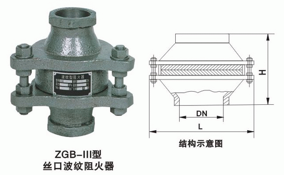 丝口阻火器又名ZGB型丝口阻火器,采用螺纹连接,适用于储存闪点低于60℃的甲类油品和闪点低于28℃的乙类油品,也适用于储存物料以氮气封顶的拱顶罐上,砾石阻火器与网型阻火器原理同上,用在管道上。丝口阻火器可与呼吸阀、呼吸人孔配套使用,也可单独使用。 阻爆性能合格,连续十三次试验每次都能阻火。耐火性能合格,耐烧,1小时无回火。